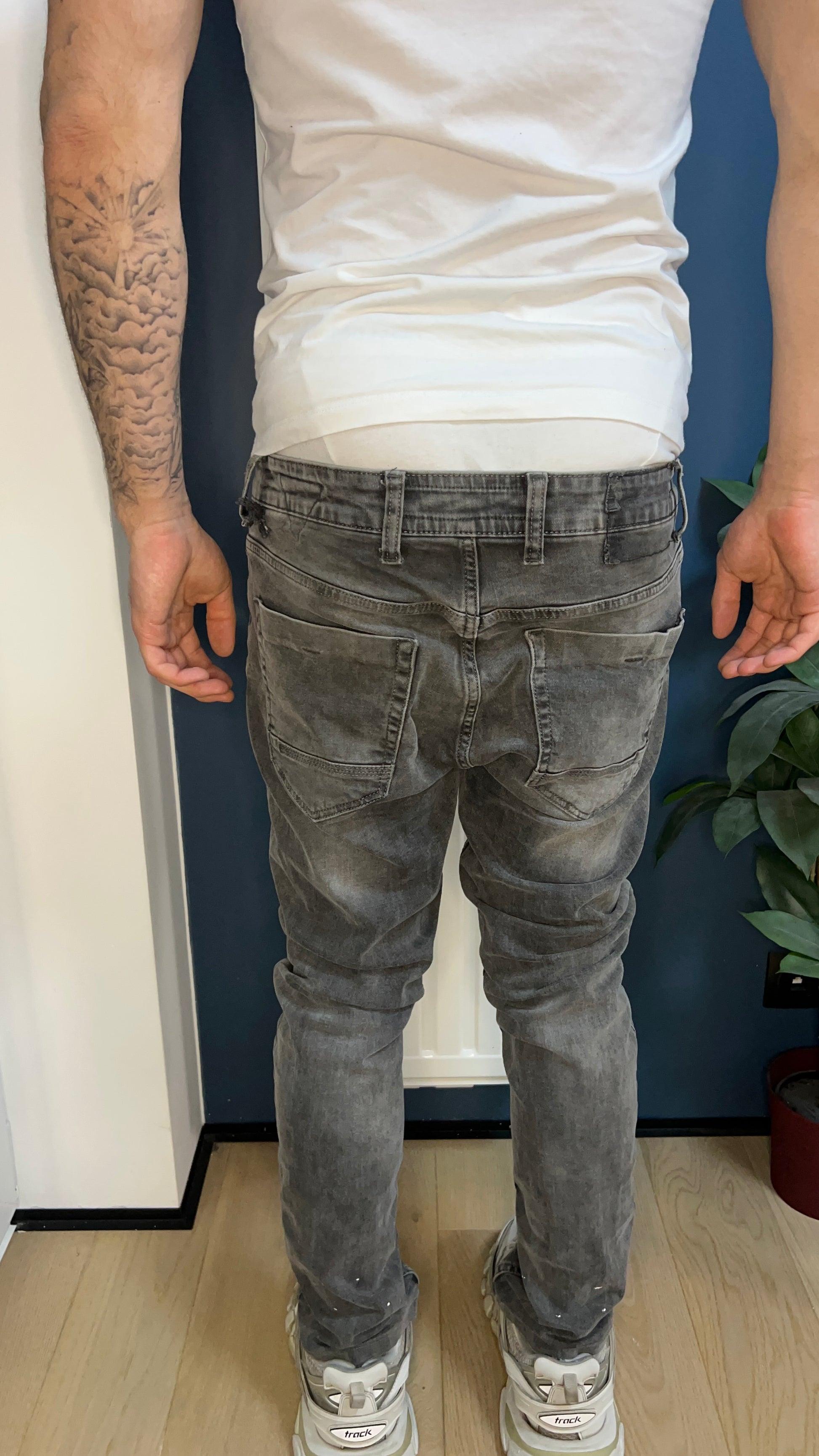 Model na zdjęciu ma 181 cm wzrostu i 72 kg wagi. Nie znaczy to że te jeansy idealnie na nim pasują