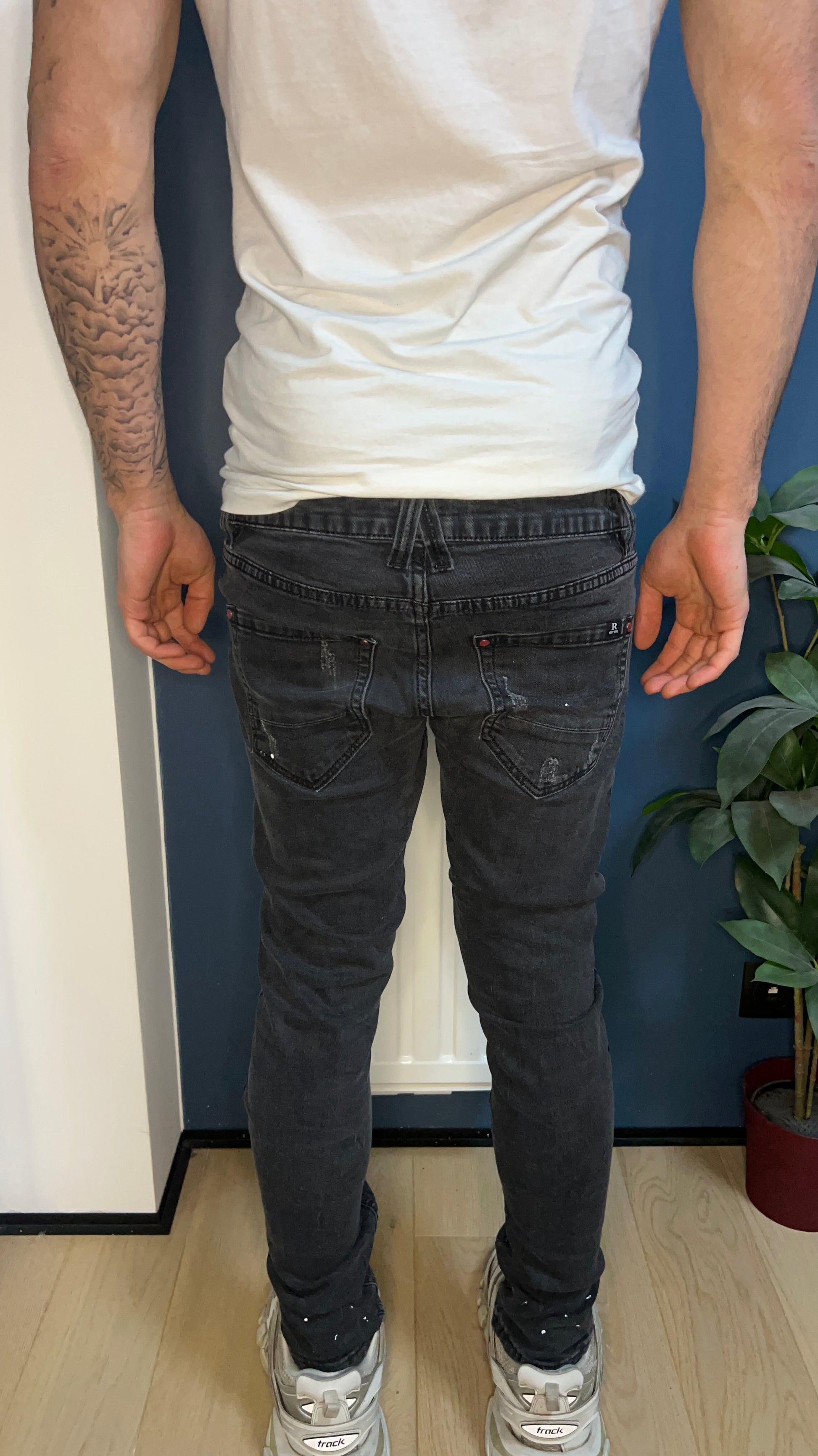 Model na zdjęciu ma 181 cm wzrostu i 72 kg wagi. Nie znaczy to że te jeansy idealnie na nim pasują